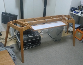 作業性を考え、天板を弧の形に角度をつけ、足の角度は全体のバランスを考えながら限界の角度までチャレンジさせて頂きました。