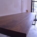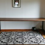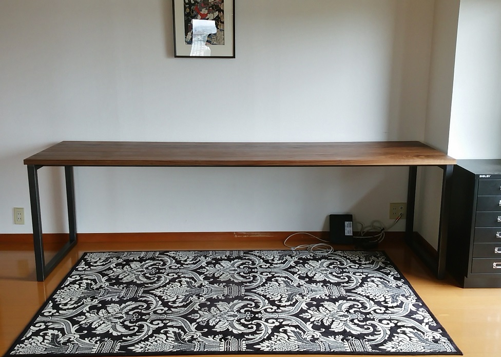 又、鉄脚のためテーブル下のスペースが、端から端まで使用でき、高さも木で足を作るより高くスペースを とることが可能です。