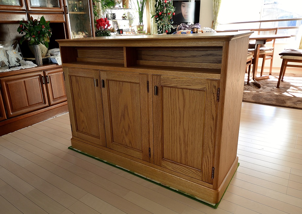 リビングとキッチンの間仕切りとして、 両側から使うことのできる