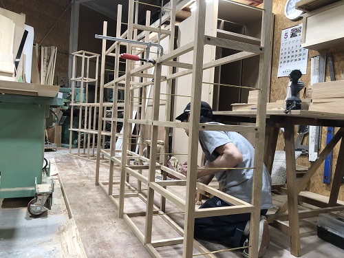 主に家具の製作は最初から最後まで1人で行うものですが、さすがにこの量。