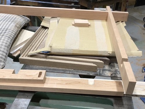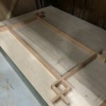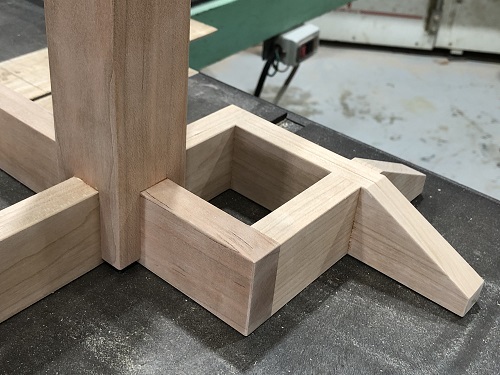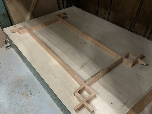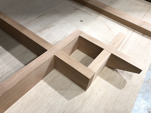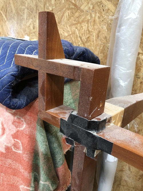 ホゾ穴を加工した脚を取り付け、色合わせの塗装を終えて完成になります。