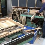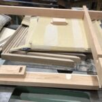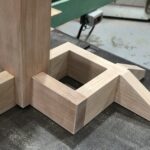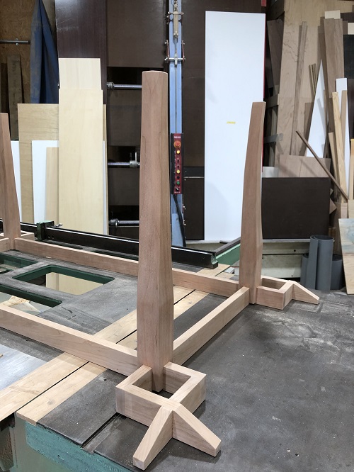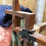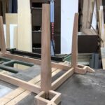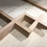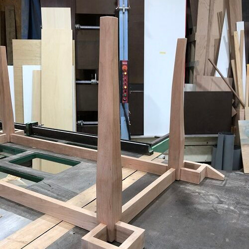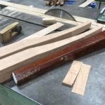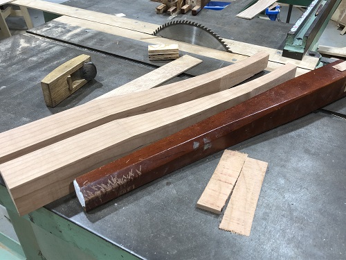 脚の加工は、元の脚から型を取り反鉋(そりかんな)でアールを確認しながら合わせていきます。
