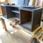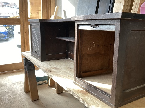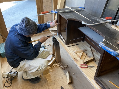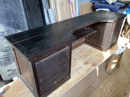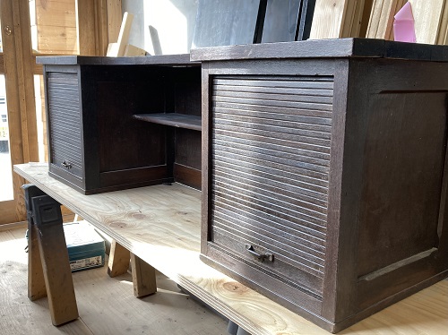 ジャバラ戸の建て付けと机表面の割れを修理。