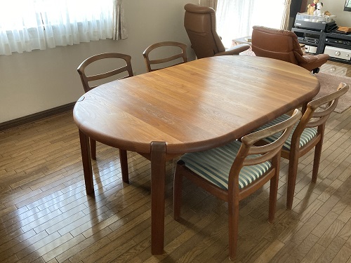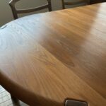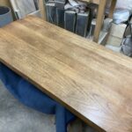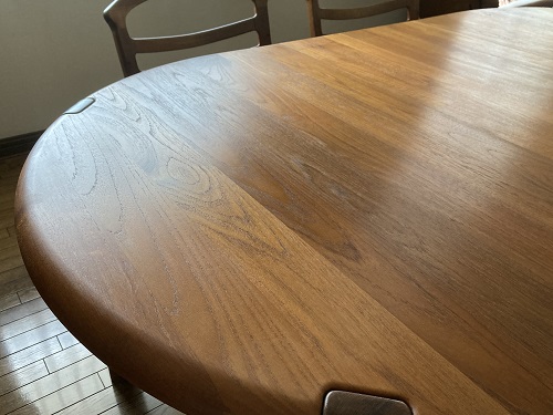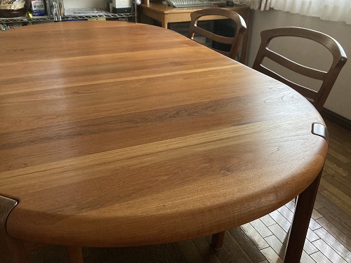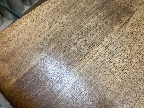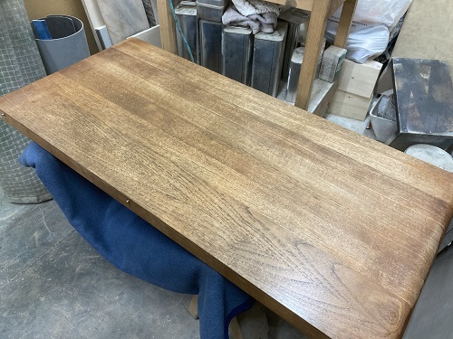 はく離後、長年の使用によるテーブル表面の凹凸を鉋で削り落とし、仕上げにはオイル塗装を行っております。