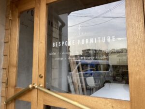 工房わきの小さな展示スペースに設置した玄関扉