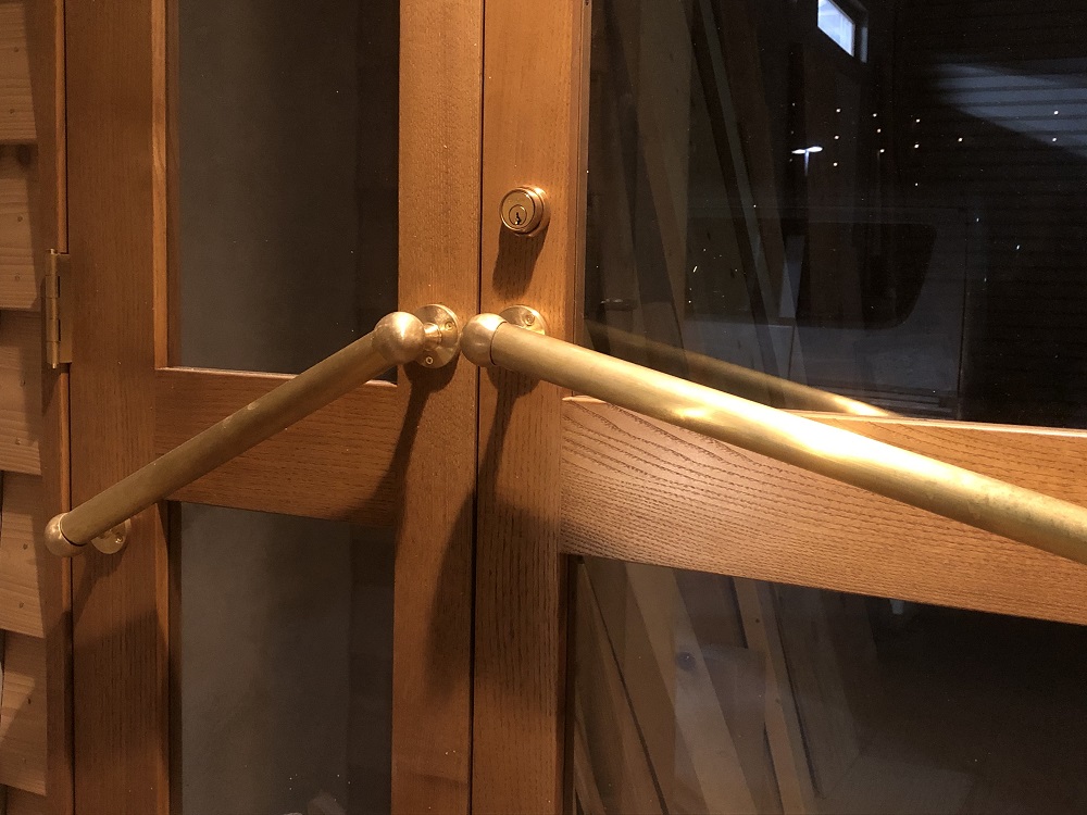 取っ手には無垢材と相性の良い真鍮のバーハンドルを仕様致しました。