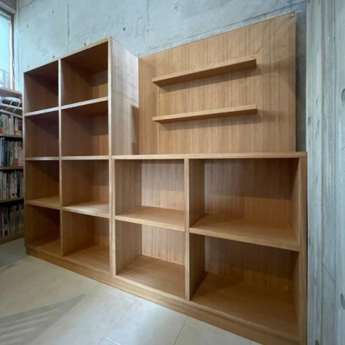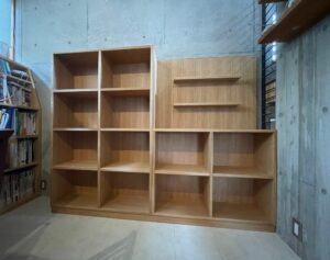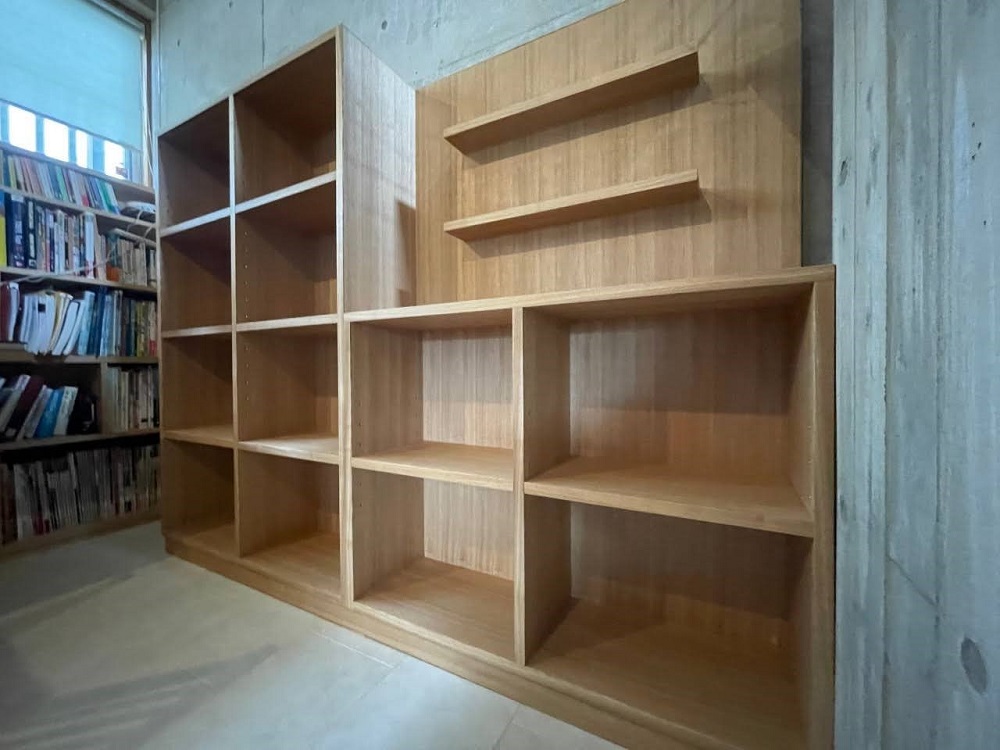 既存の本棚もタモの突板で製作されていたため、今回も同じタモ柾目を仕様致しました。