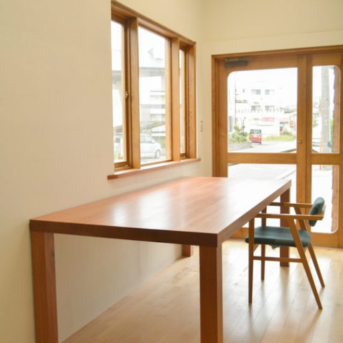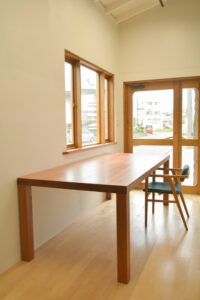 幕板がないため、アーム付きのダイニングチェアーもすっきりテーブルの下に収めることが出来ます。