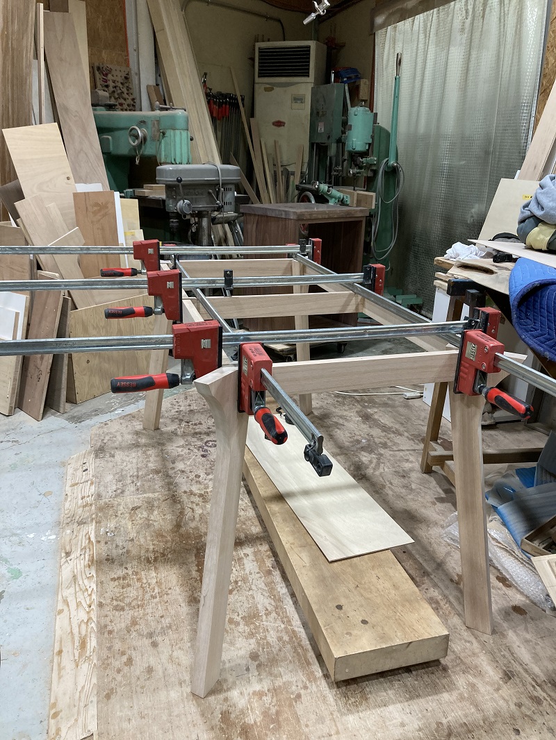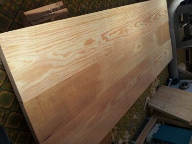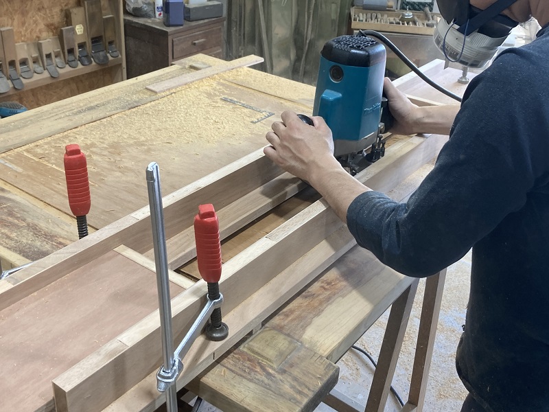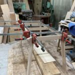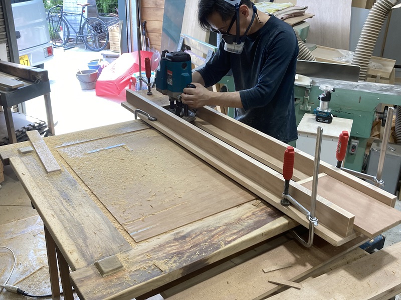 テーブルの天板修理と、仕事用デスクの製作作業の様子です。