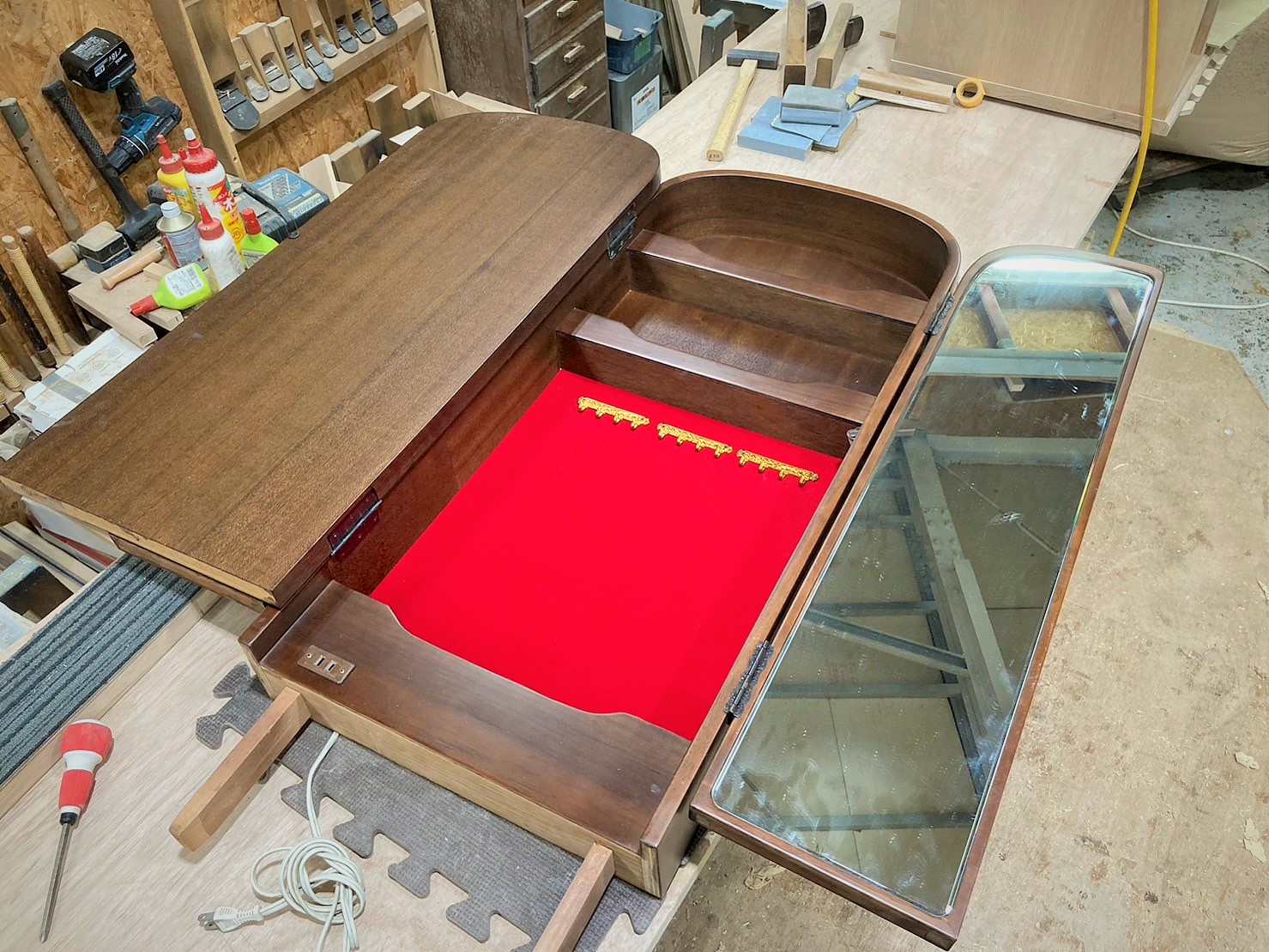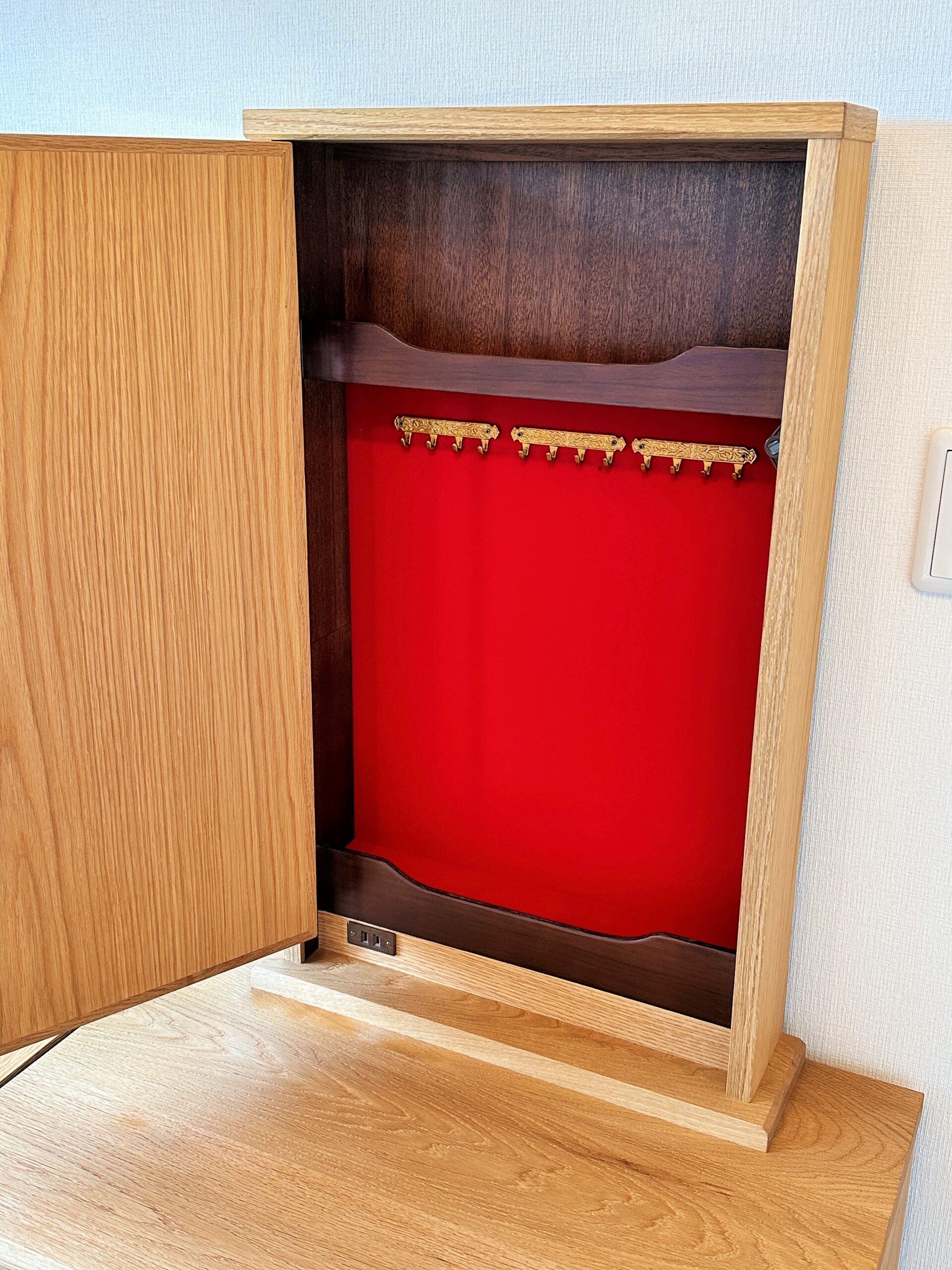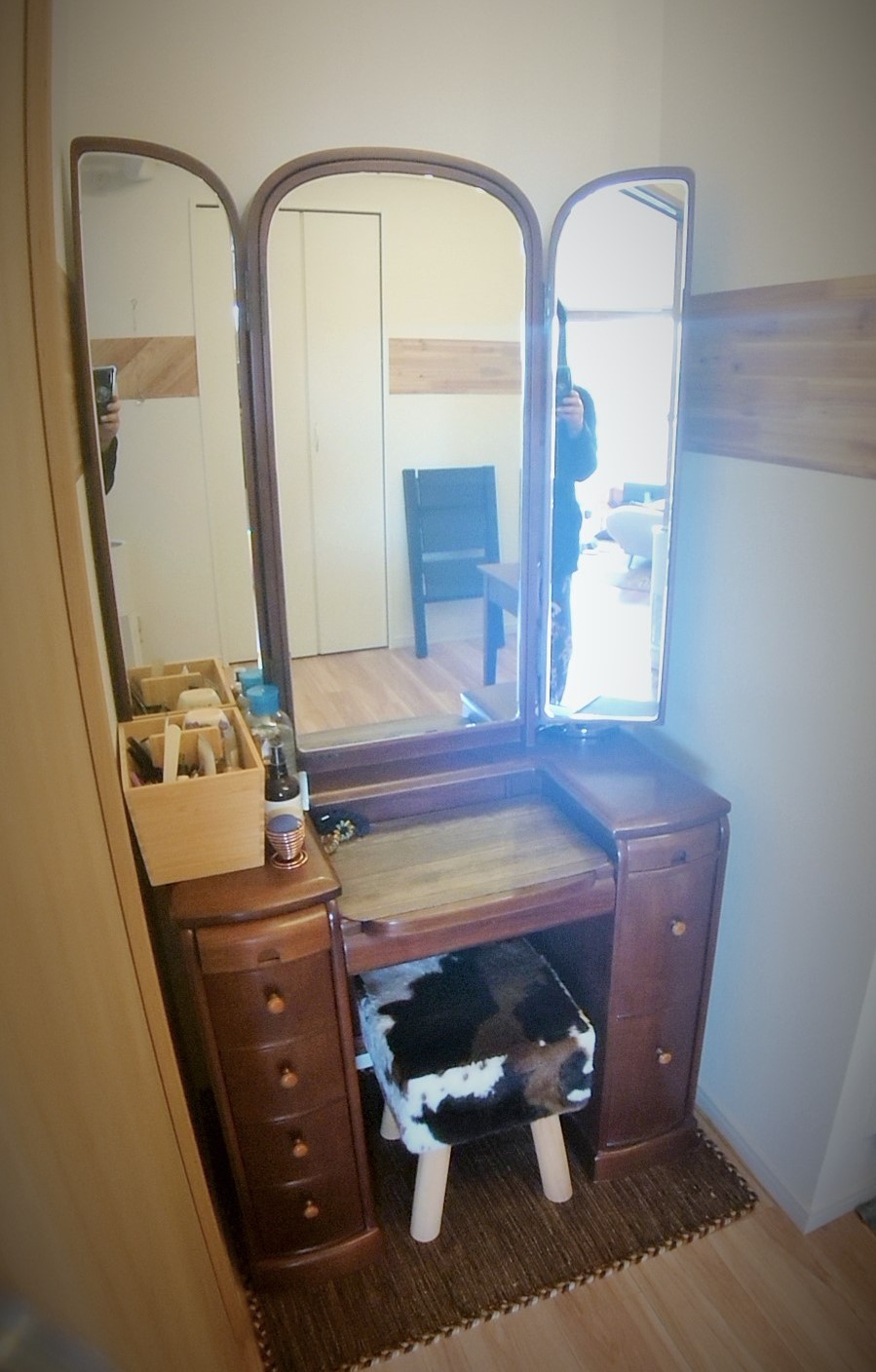 ミラーボックスを開くと内部にお母さまの形見のドレッサーが現れる設計です。