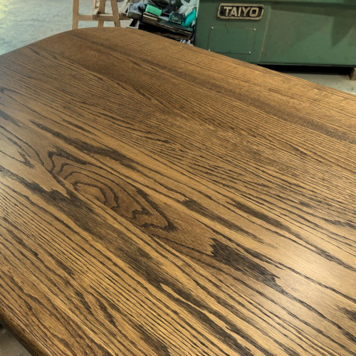 ナラ材のダイニングテーブルの天板の補修・塗装直しについてご紹介いたします。