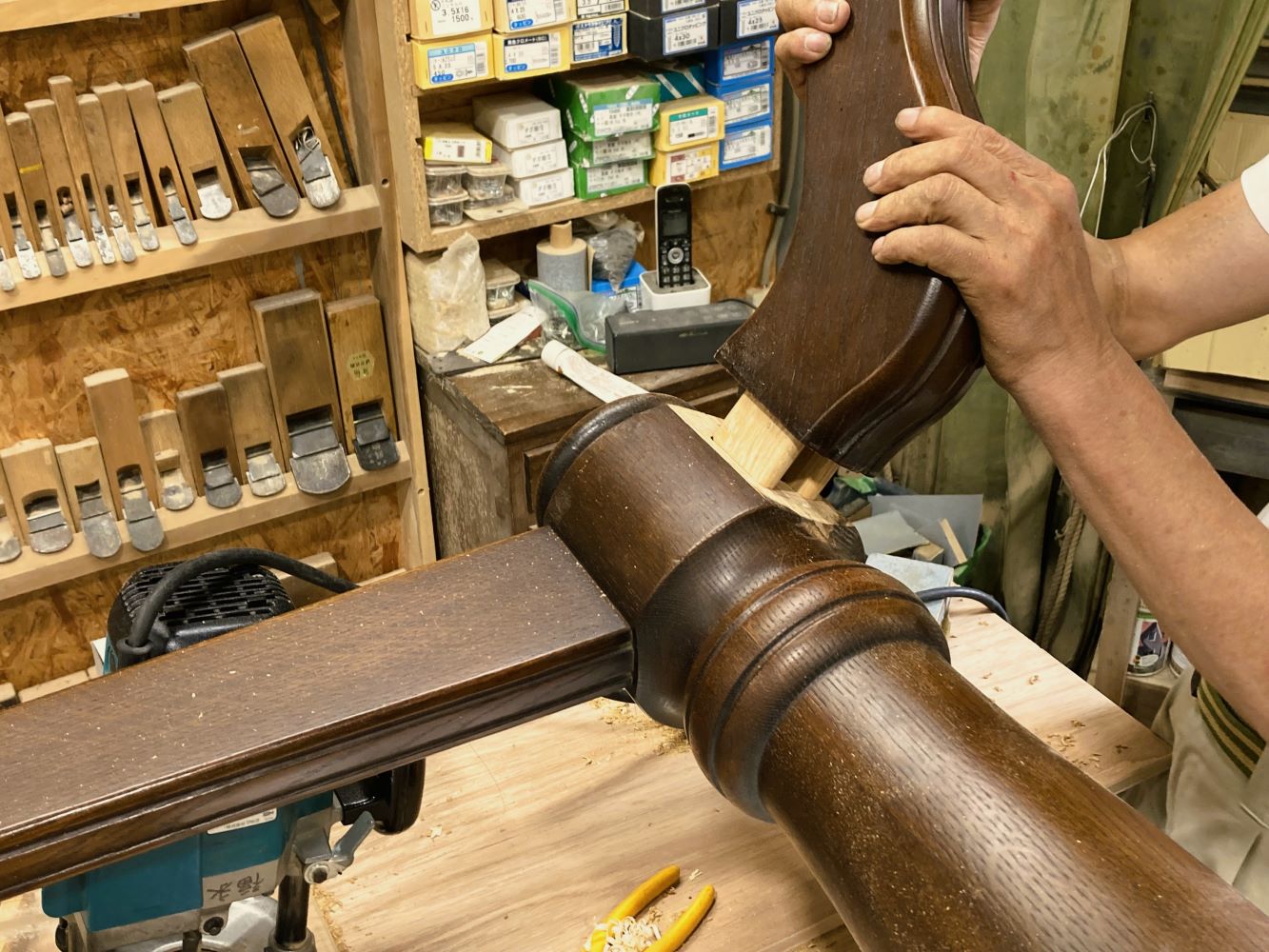 部品を外して1枚だったほぞを2枚にし、元の脚よりもしっかりと固定しなおしました。