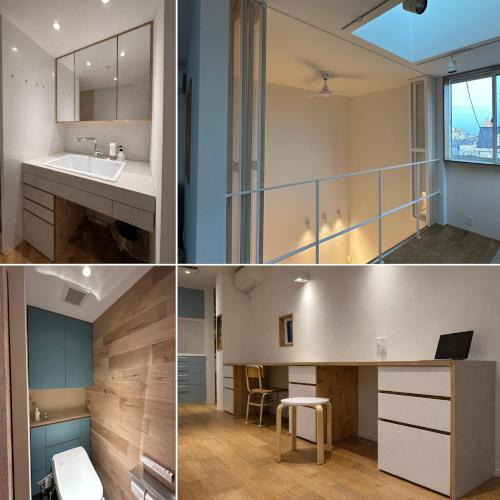 今回の施工では、洗面台収納・デスク収納・トイレ収納など、住宅内のさまざまな場所に合わせた造作家具を製作しました。